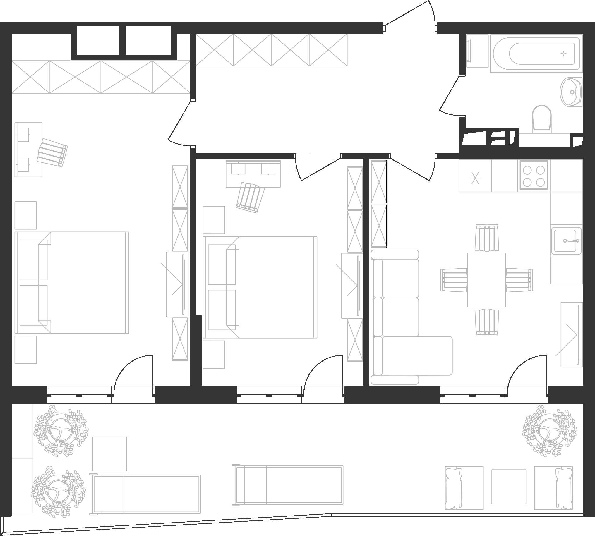 В гостиничном комплексе предложено множество планировочных решений: в наличии апартаменты от 36 до 158 кв.м. Сдаются они с мебелью, панорамными окнами и высотой потолков 3 метра. Из окон номеров гостиничного комплекса открывается вид на Черное море.